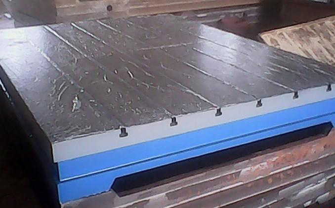 我公司生產的鑄鐵T型槽平臺工作面采用的是刮研工藝,用涂色的方法進行檢驗,保證了平面的精度。工作面一般有T型槽,也可以根據要求加工長孔和圓孔,這種T型槽平臺采用的是優質純鐵鑄造而成的。我公司生產T型槽平臺廣泛應用在動力機械設備的裝配、調試、焊接、鉚焊,這種產品表面帶有T形槽,可以固定機械設備。另外需要提醒的是,我公司可以根據用戶的要求,定制各種規格的T型槽平臺。我公司為黑龍江康潔機電設備公司生產的1500×3000T型槽平臺14塊下面是生產現場中圖片場景: