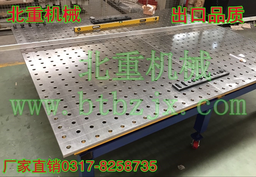 3、精確性:柔性焊接平臺再2噸左右1M2集中載荷的作用下,其變形量不超過0.50mm,而再均布載荷作用下,其變形量只有0.024mm,完全可以滿足絕大多數的焊接及裝配加工的需要,其組建的精度高,工作平臺定位孔中心公差保證在0.05mm以內。這種高精度將會反映在用戶所加工的產品中,因此此工作臺也可用作檢具的基準平臺。
